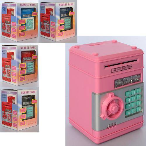 Скарбничка сейф з кодом, 19,5*13,5*13,5см, затягує купюри, звук, світло, 9 видів, на бат. в кор. 14*20*14см (10шт)