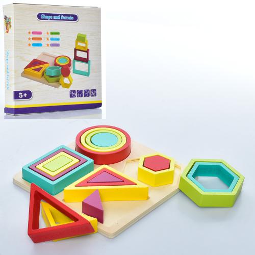 Дерев'яна іграшка Геометрика фігури, 18 шт, в кор. 18,5*18,5*3см (30шт)
