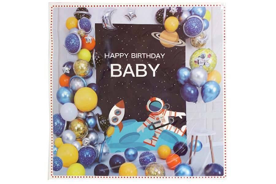 Набір кульок для декору до дня народження, КОСМОС (банер, кульки) 35-26см