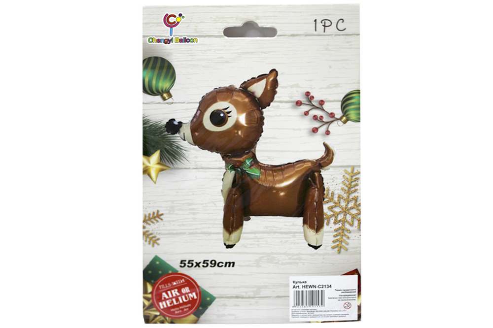Кулька фольгована 3D, фігурна Новорічний олень 55*59см