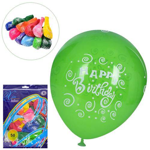Кульки надувні 12 дюймів, принт день народження, мікс кольорів, ЦІНА ЗА УП. 50ШТ, пак. (50шт)