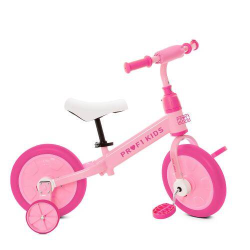 Велосипед-біговел дитячий PROFI KIDS 12 д., колеса EVA, 2в1, педалі, дод. колеса, ексцентрик, рожевий (1шт)