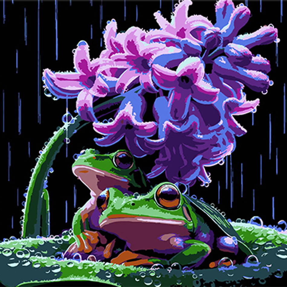 Картина за номерами Жабенята та весняний дощ на чорному фоні 30х30см, термопакет, ТМ Стратег, Україна