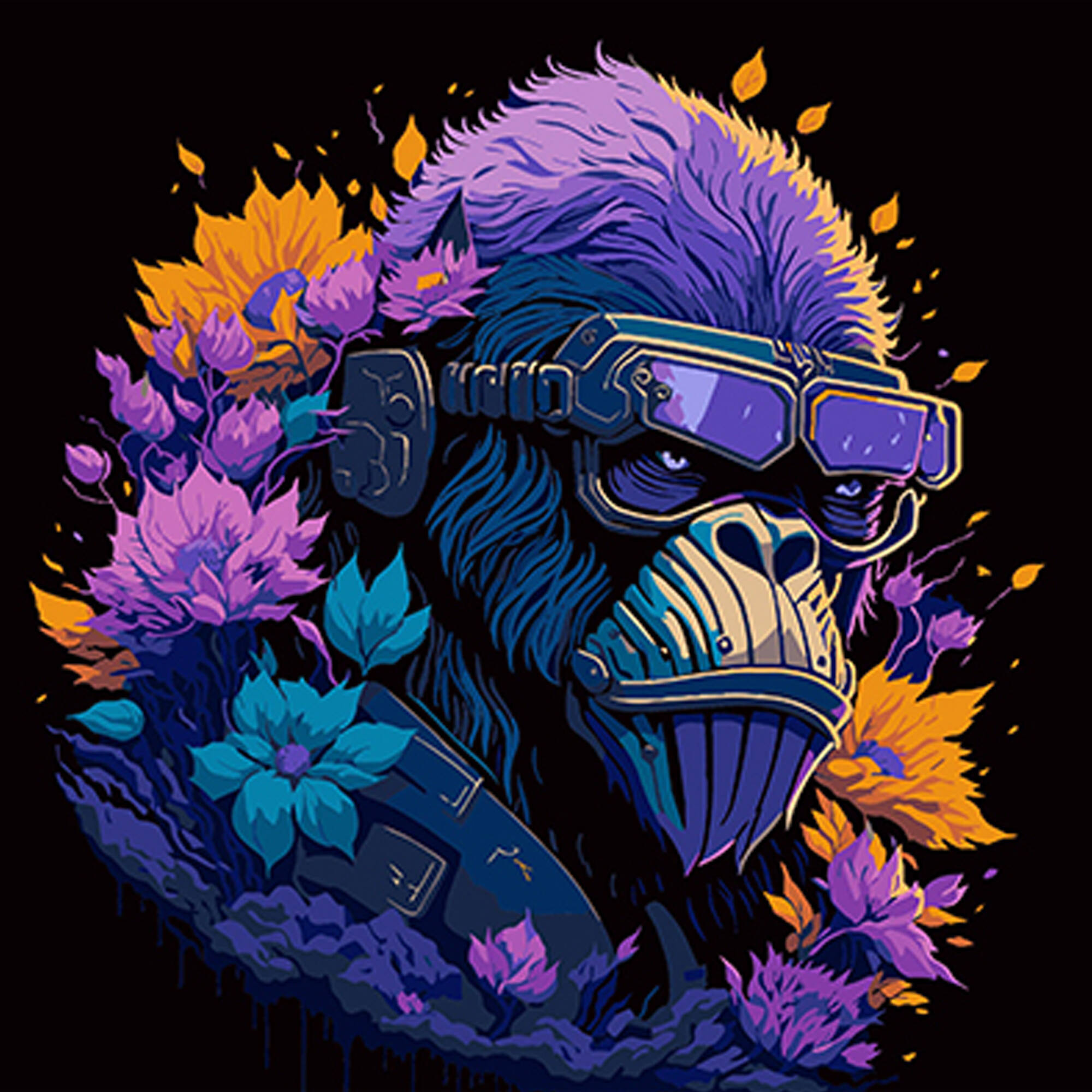 Картина за номерами Горила в окулярах і квітковій красі на чорному фоні 40х40см, термопакет, ТМ Стратег, Україна