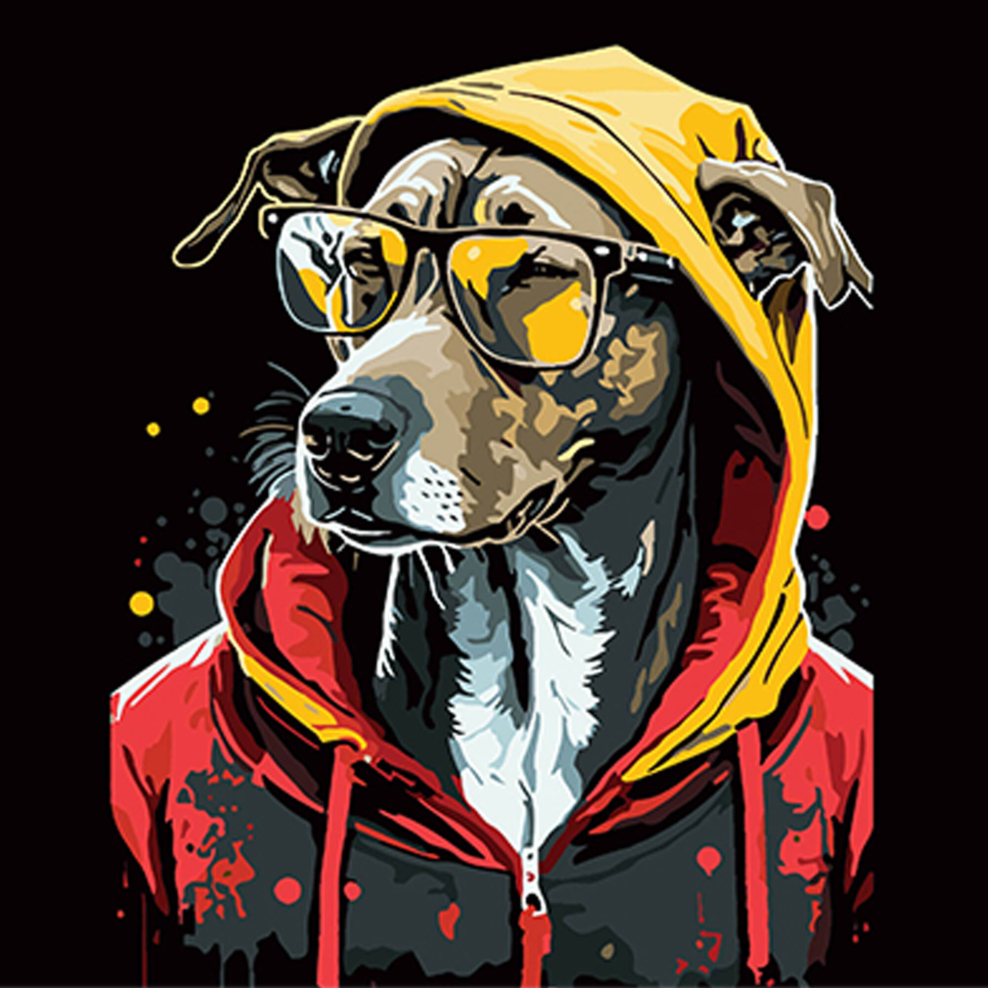 Картина за номерами Модний пес в стильному образі на чорному фоні 40х40см, термопакет, ТМ Стратег, Україна