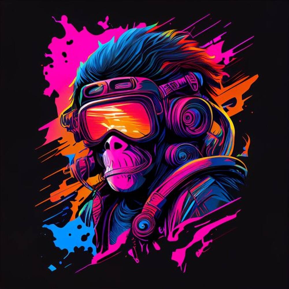 Картина за номерами Брутальна мавпа на чорному фоні 40х40см, термопакет, ТМ Стратег, Україна