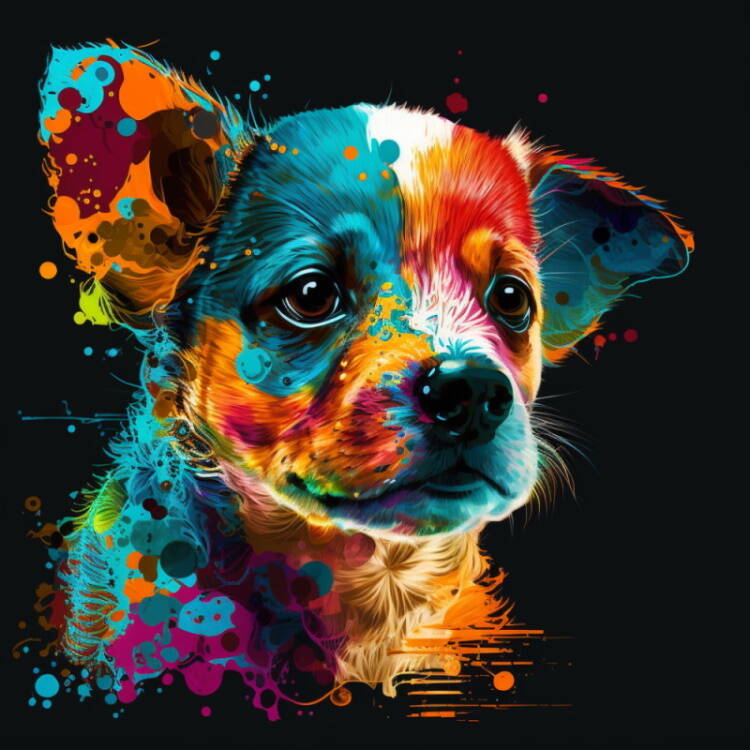 Картина за номерами Барвисте цуценя на чорному фоні 40х40см, термопакет, ТМ Стратег, Україна