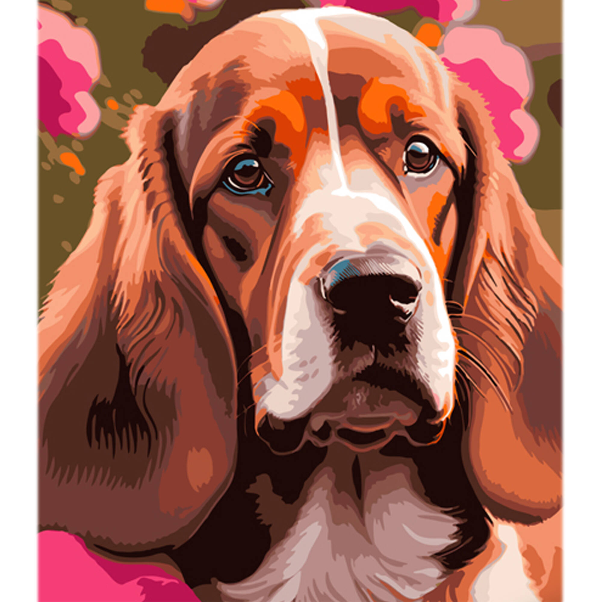 Картина за номерами Вираз собачого погляду на кольоровому фоні 40х50см, термопакет, ТМ Стратег, Україна