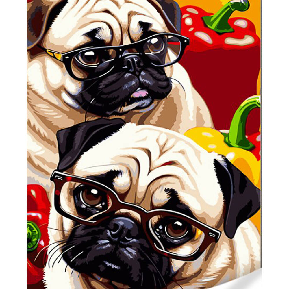 Картина за номерами Мопси з перчинкою на кольоровому фоні 40х50см, термопакет, ТМ Стратег, Україна