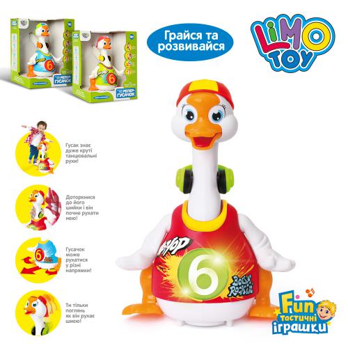 Гусь 21см, музичний LIMO TOY, звук (англ), світло, їздить, танцює, 3 кольори, бат., в кор. 25*20*15см (12шт)
